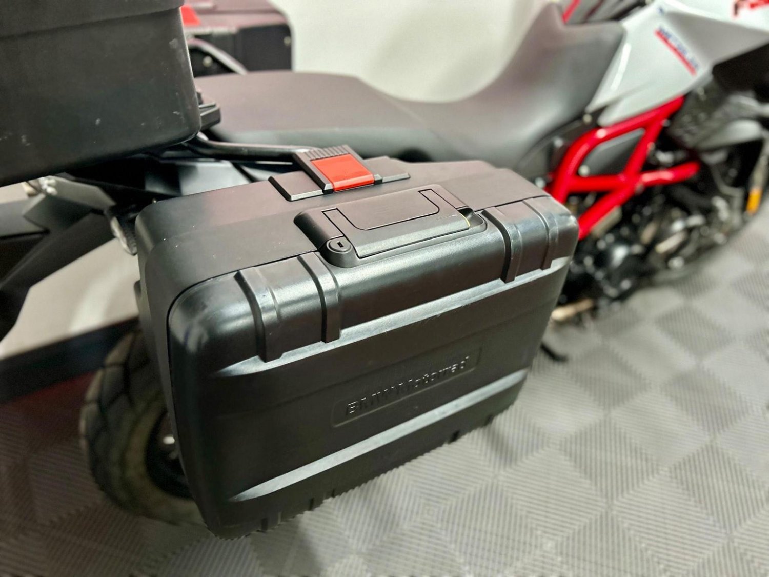 This particular example we have benefits from having ABS, 1 key, owners manual / service book with 3 stamps + plus 2 additional service invoices (9,600 miles & 11,600) all from BMW, BMW Navigator VI, Full BMW 3 box removable luggage, Heavy duty hand guards, Brembo brake calibers front and rear, Engine crash protection bars, 3 selectable rider modes (Rain / Road /enduro) Factory fitted variable heated grips, Centre stand, Adjustable rear shock preload