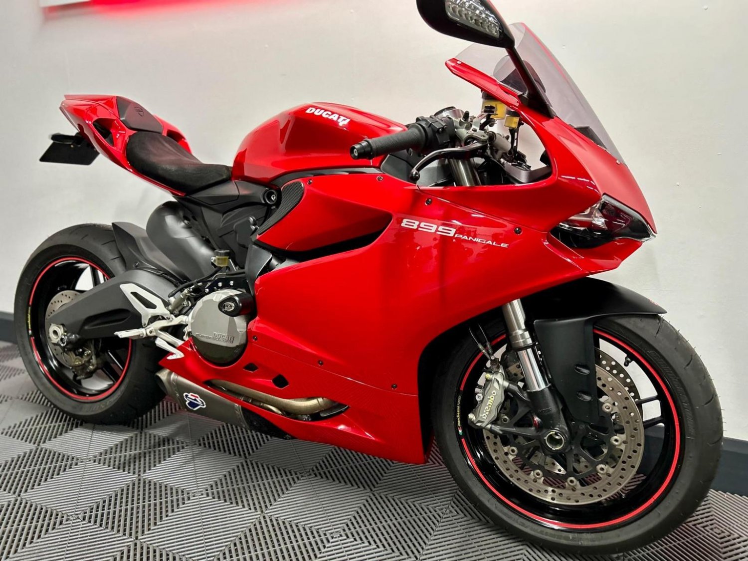 The Ducati 899 Panigale's impressive handling and performance characteristics. The excerpt highlights how the 899 Panigale's handling envelope, or the range of its capabilities, is more accessible to regular riders compared to a superbike's, but still best experienced on a track rather than on regular roads. The front end of the motorcycle is praised for providing a strong sense of feedback, allowing riders to confidently navigate corners at higher speeds that might require a mental adjustment due to the exhilarating experience. The 899 Panigale doesn't exhibit the instability or unsettling behavior of its larger sibling under hard acceleration, which contributes to a more enjoyable riding experience. Overall, the language used portrays the 899 Panigale as an exciting and approachable motorcycle with impressive performance attributes.