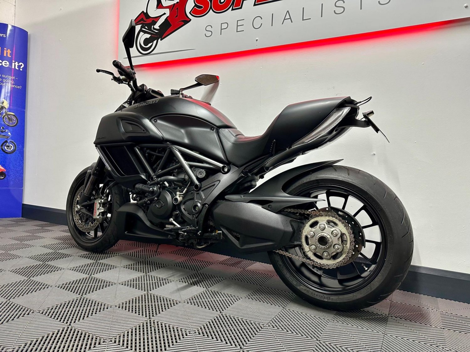 Powered by the Testastretta 11-degree V-twin, the Ducati Diavel makes a seriously impressive 160bhp with 94ft.lb of torque, which puts a fair few sportsbikes to shame, let alone cruisers! . What an example we have here with such low mileage and in arguably the best colour " Murdered out " in all black. Boasting a full service history containing 3 stamps ( We will be doing the belt service with the sale ) Both keys and all bookpacks.|| At Superbike Specialists, we offer a top selection of HPI-clear used motorcycles (unless stated). Our bikes are mechanically prepared by passionate onsite mechanics, with a focus on exceptional customer service. Every bike includes a 30-day warranty, with options to extend to 6 or 12 months, a minimum of 6 months MOT, and a fresh service. UK mainland delivery starts at £50. Competitive finance and card payments are accepted. We are also an authorised Scorpion Datatool dealer, offering fully fitted S5 Thatcham-approved trackers from £299. ||
