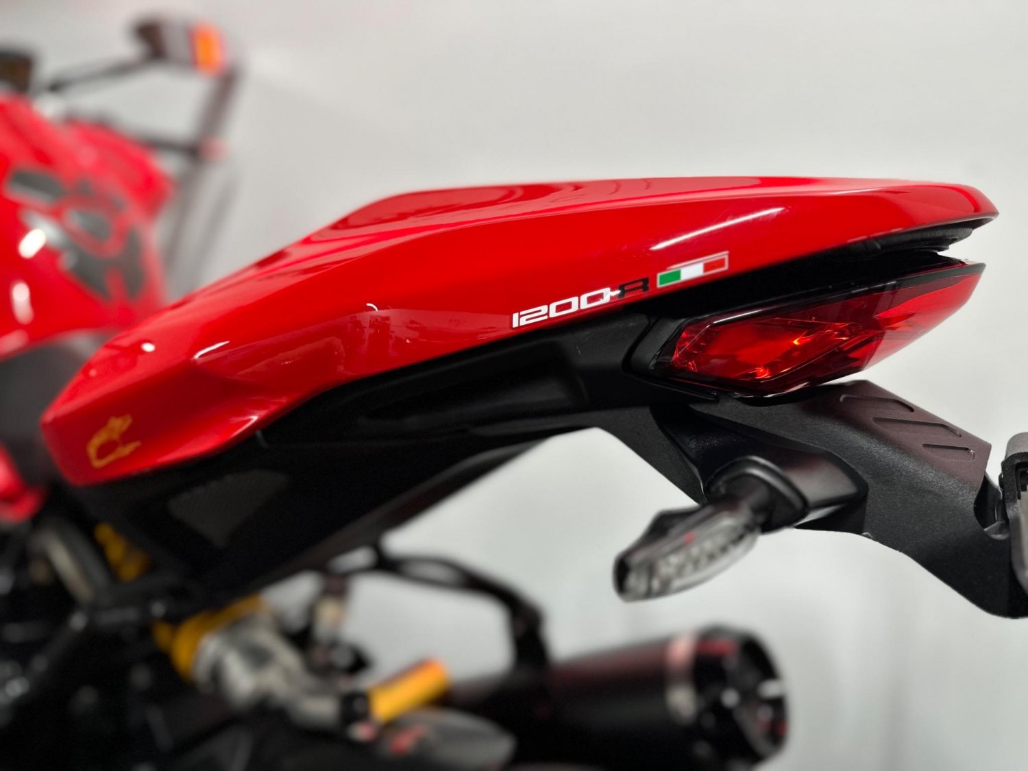 The new Monster R can definitely go directly to the racetrack because it also has 1299 Panigale-style wheels and the same massive 200 section Pirelli Supercorsa SP tire on the back.