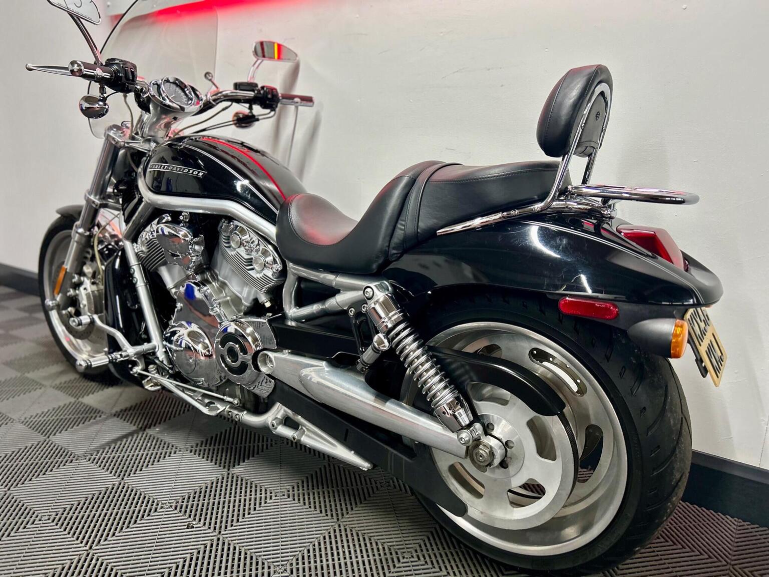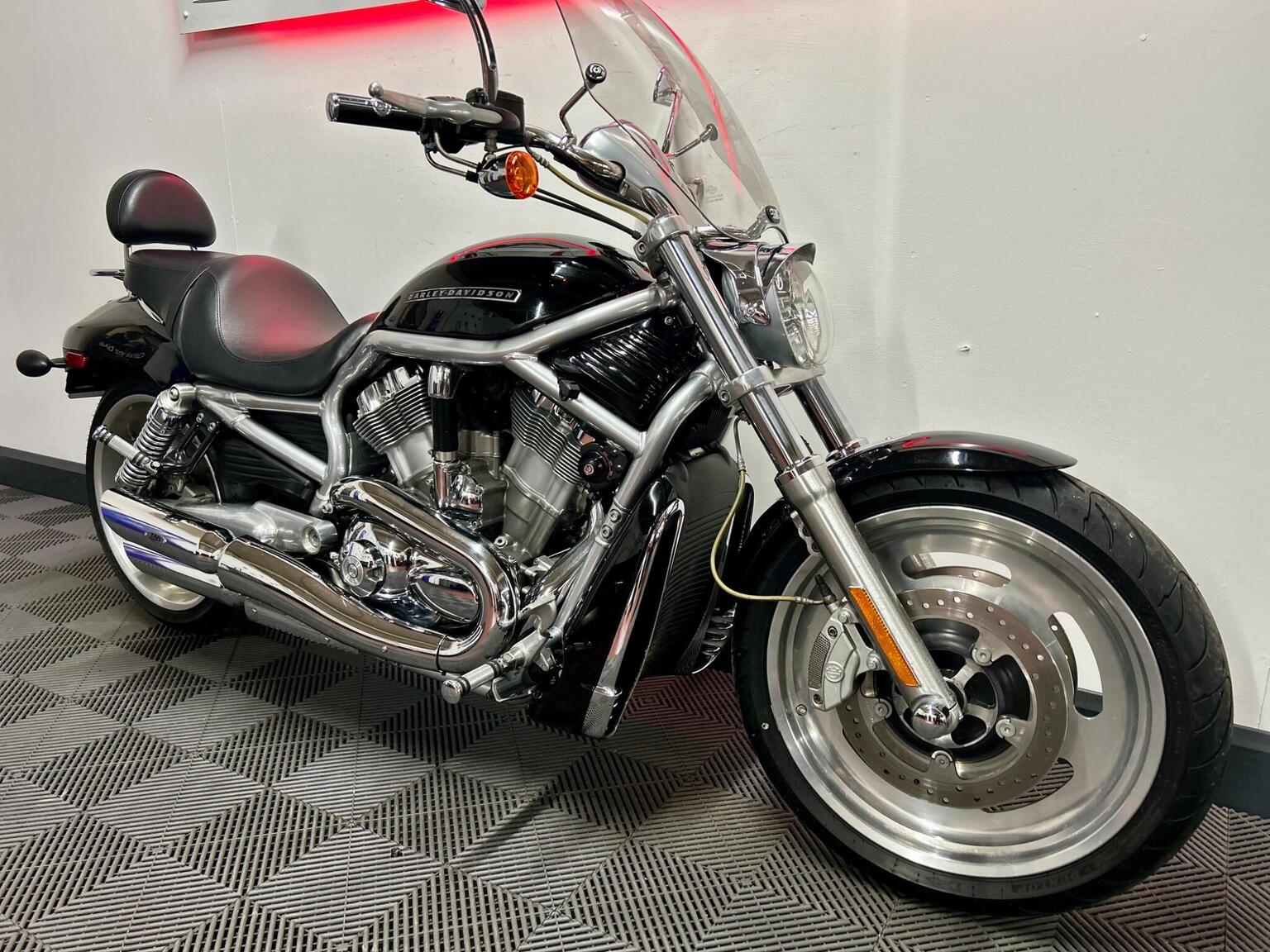 The 2006 Harley-Davidson V-Rod features a 1131cc liquid-cooled V-twin engine developed with Porsche, producing about 115 horsepower. Key facts include its hydroformed chassis, under-seat fuel tank (with a dummy tank covering the airbox), l unique styling with features like solid disc wheels, forward controls, and a wide rear tire. A sportier version, the VRSCR Street Rod, was also available, offering more suspension travel.