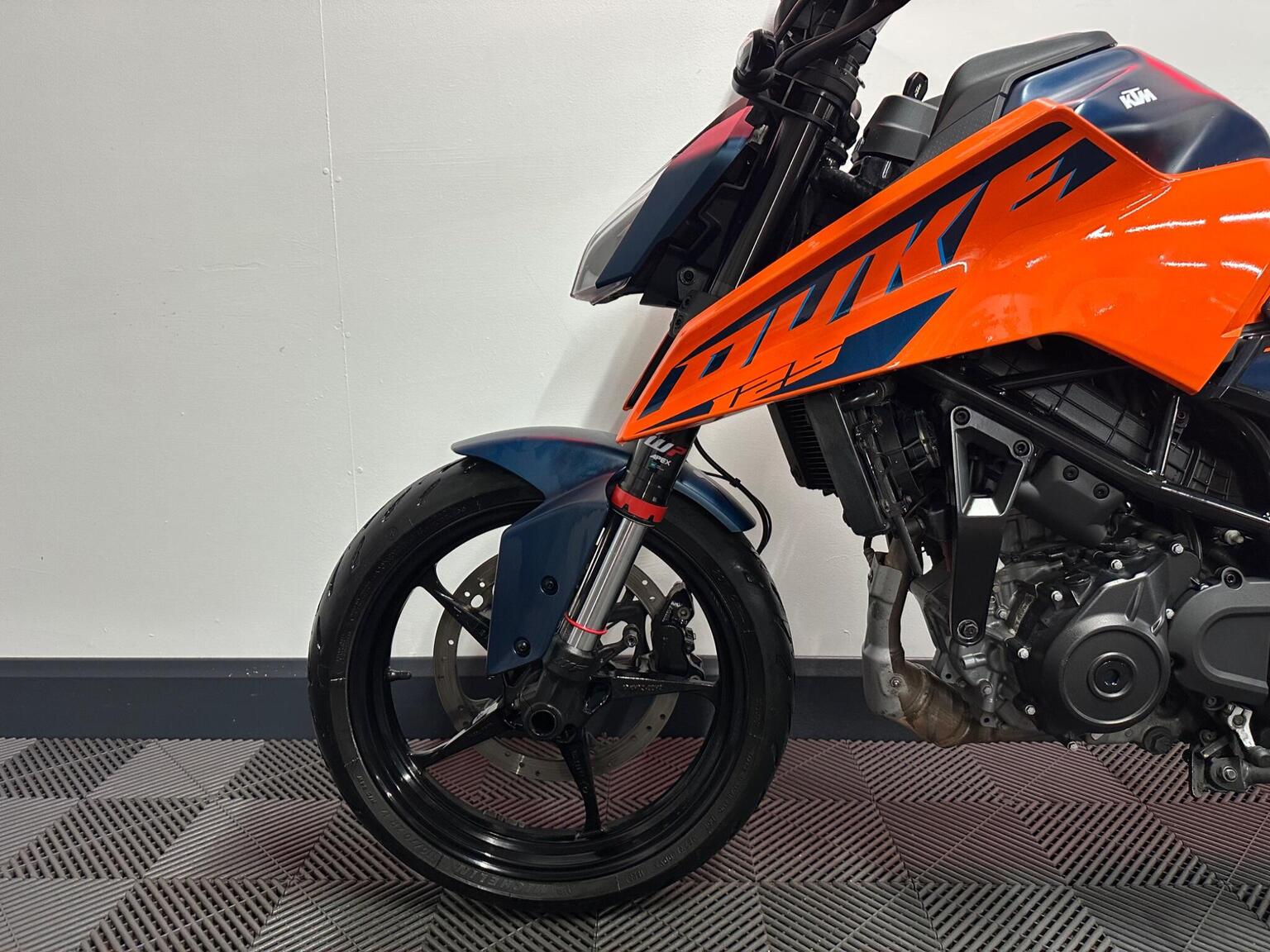 The 2025 KTM 125 Duke is a lightweight, aggressive naked bike featuring a 125cc single-cylinder engine, a new steel trellis frame, and advanced technology like a 5" TFT display with smartphone connectivity, Cornering ABS, and full LED lighting.