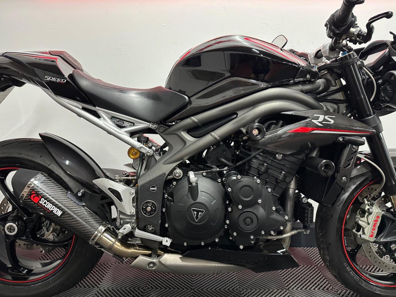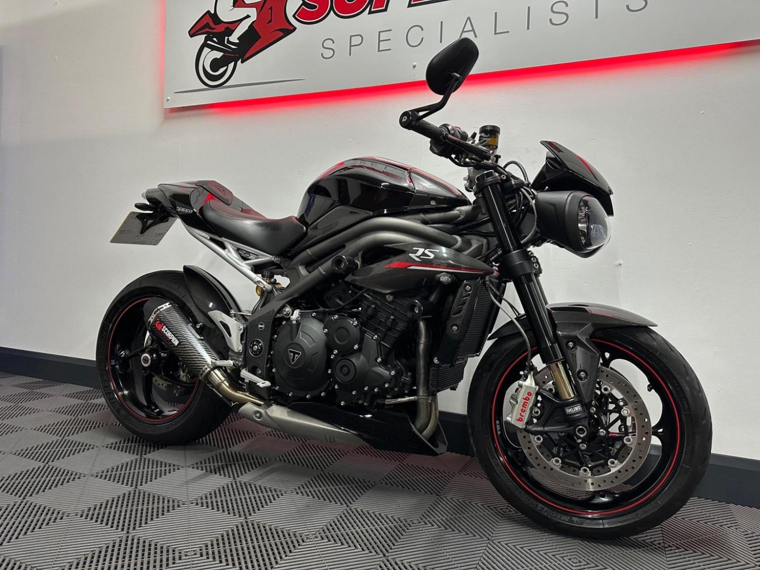The Triumph Speed Triple 1050 RS’s power and torque have been increased for 2018. The delivery is smooth and effortless, yet it still has enough rush to deliver, even for dedicated sports bike fans.The riding aids are now on par with the competition, and welcome touches like cruise control and heated grips have further widened the models appeal. Truly a very well maintaned and kept example. Please see our detailed photos\videos as this bike is not to be missed! The bike comes with a total of 7 service stamps, all the keys, scorpion exhaust, Low miles and a tail tidy.